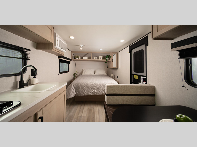 Sleeps 2 Slides 1 Length 24 ft 7 in Ext Width 8 ft 5 in Ext Height 11 ft 2 in Int Height 6 ft 9 in Hitch Weight 570 lbs GVWR 6500 lbs Dry Weight 4935 lbs Cargo Capacity 1565 lbs Fresh Water Capacity 52 gals Grey Water Capacity 39 gals Black Water Capacity 39 gals Available Beds Queen Refrigerator Type 12V Refrigerator Size 8 cu ft Cooktop Burners 3 Shower Size 30" x 36" Number of Awnings 1 LP Tank Capacity 20 lbs Water Heater Type On Demand Tankless AC BTU 13500 btu Awning Info 17' Power w/LED Lights Axle Count 2 Number of LP Tanks 1 Shower Type Standard Electrical Service 30 amp Similar Floorplans